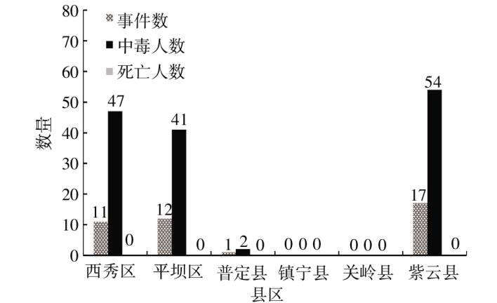 Objective To understand the distribution of common poisonous mushrooms in Anshun City,analyze the epidemiological characteristics,geographically relevant distribution and poisoning risk factors of local poisonous mushroom poisoning events,and provide scientific preventive and control measures for poisonous mushroom poisoning. Methods Conduct a resource-based survey to understand the distribution of common poisonous mushrooms in Anshun City. Using descriptive epideiology to analyze the epidemiological characteristics of mushroom poisoning incidents in Anshun City from 2019 to 2023,and conducting field research on the risk factors of mushroom poisoning. Results The results of the resource survey showed that four species of lethal and highly toxic mushrooms were identified in Anshun City by the Chinese Center for Disease Control and Prevention:reddish gooseberry,fleshy brown scaly ringstalker,poisonous ringstalker,and sub-scarce pleated red mushroom.A total of 41 cases of poisonous mushroom poisoning were reported in Anshun from 2019 to 2023,with 181 exposed individuals and 144 patients,and an illness rate of 79.56%.Poisoning incidents were concentrated from May to November,accounting for 25% of the total number of foodborne disease incidents. Exposure places were mainly families,accounting for 95.12%(χ2=24.611,P<0.01),and the incidence rate in rural areas was higher than that in cities.The age of onset of poisoning was mainly ≥21 years old,accounting for 75.69%.There were significant differences in mushroom poisoning incidents among different counties and districts(χ2=40.938,P<0.01). Conclusion Mushroom poisoning is one of the main causes of the food poisoning events in Anshun City. Special food safety and health education on poisonous mushrooms should be carried out in areas,places,and high incidence seasons where poisonous mushroom poisoning occurs,in order to improve public health awareness and the ability of grassroots medical institutions to treat poisonous mushroom poisoning,thereby reducing the occurrence of poisonous mushroom poisoning incidents.