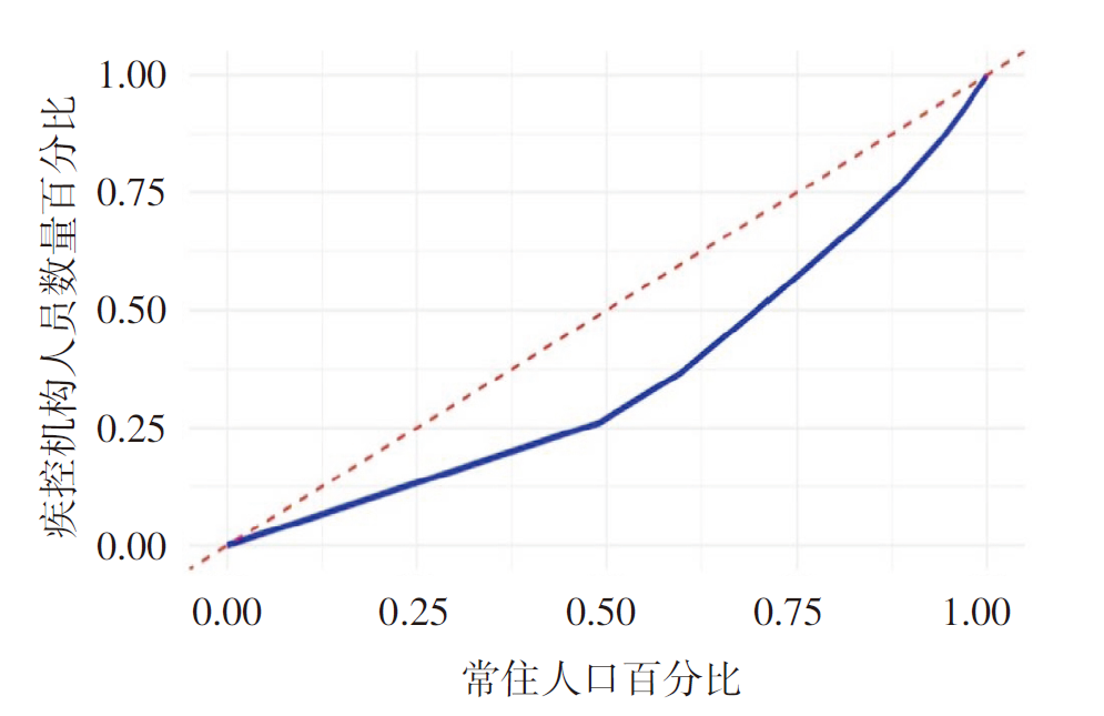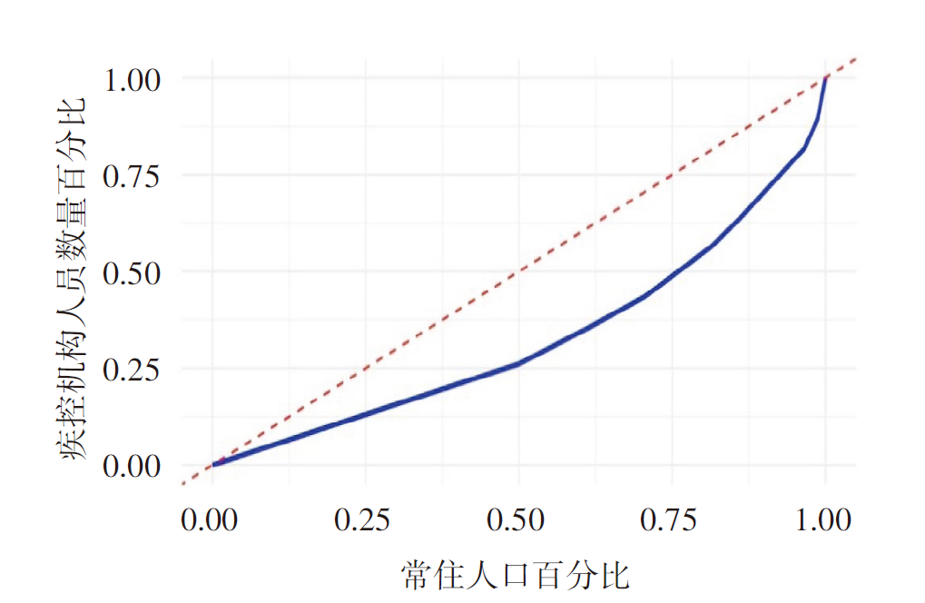 Key words: Center for disease control and prevention, Human resources, Fairness, Lorentz curve, Gini coefficient, Concentration of human resources, Population agglomeration