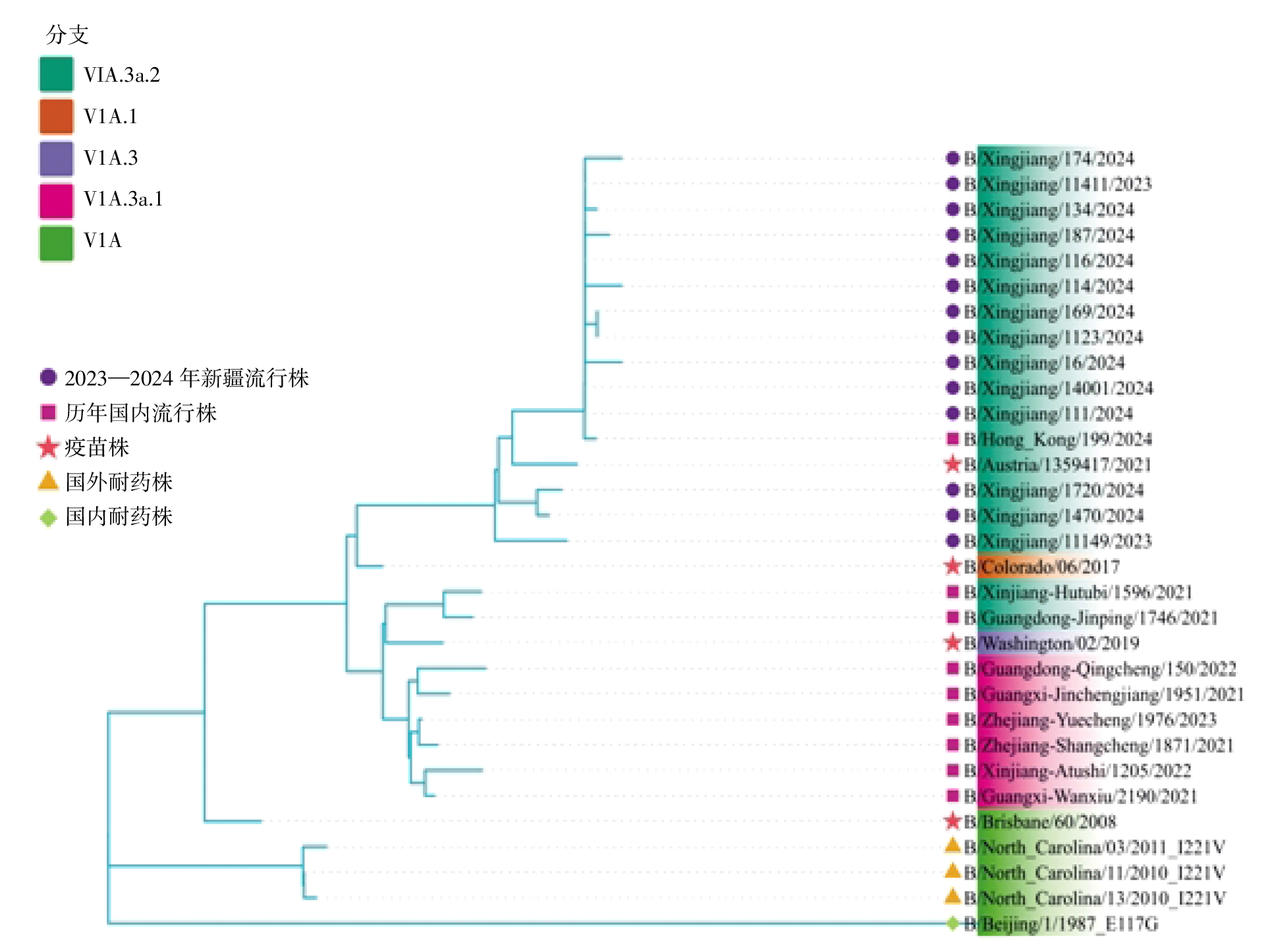 | B/Xinjiang/174/2024 | — | — | V | L | L | — | G | — | — | — | — | — | — |