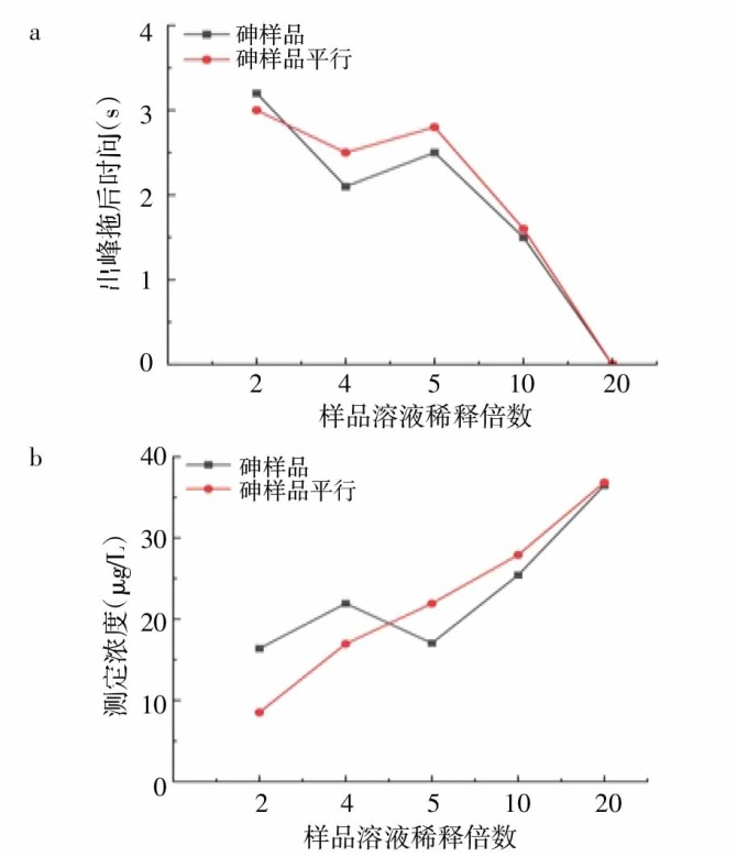 Objective To compare the impact of different pre-treatment methods on the detection of arsenic in water with complex matrices,screen for the optimal method that ensures normal peak shape and retention time,and verify this through proficiency testing. Methods Referring to GB/T 5750.6-2023 "standard examination methods for drinking water-Part 6:Metal and metalloid indices" 9.1,hydride generation atomic fluorescence spectrometry was used to determine arsenic in water. The sample solution was diluted to 5 times with pure water,5% hydrochloric acid,and the 125 g/L thiourea-ascorbic acid solution,heated at 70 ℃ for 30 min,and then detected by atomic fluorescence spectrophotometry. Results Within the linear range of 0-20 μg/L,the standard curve was I=90.927 4×C-13.638 7,with a correlation coefficient of 0.999 7. Quality control was performed on the samples using spike recovery and the reference sample,and the proficiency testing result was satisfactory. Conclusion Through this proficiency testing,the laboratory personnel optimize the pre-treatment steps for complex matrix water samples,enhance the accuracy of arsenic detection,and provide an effective pre-treatment method for the detection of arsenic in complex water samples.