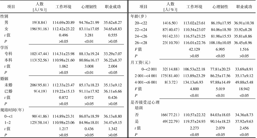 | 变量 | 职业满意度 | 组织内竞争力 | 组织外竞争力 | 职业 成功 | 力量 | 乐观 | 坚韧 | 心理 韧性 | 职业 发展 | 领导与管理 | 医护 关系 | 认可 氛围 | 专业 自主 | 基本 保障 | 充足 人力 | 工作 环境 |